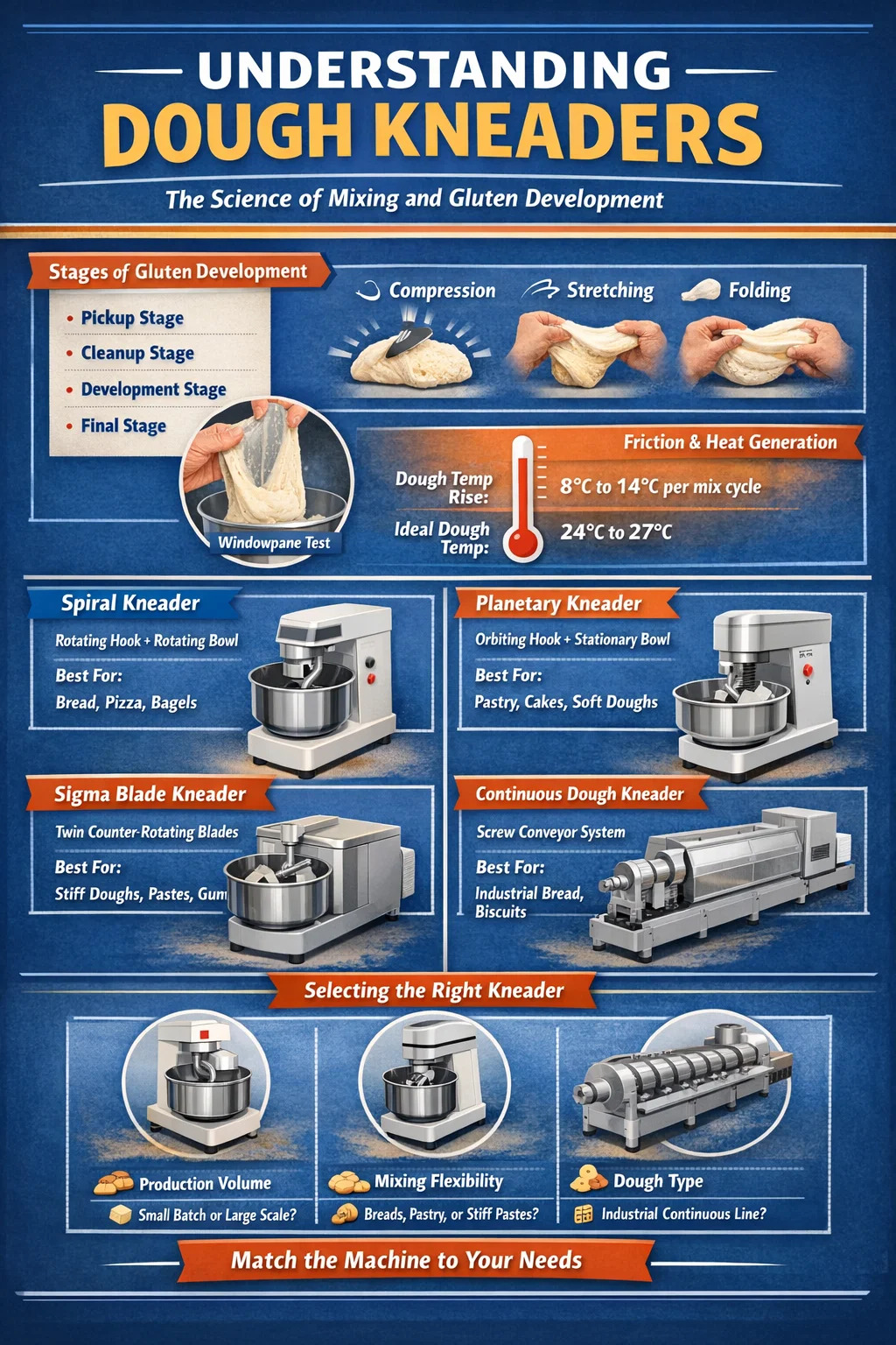 Ať už provozujete malý spirálový hnětač v sousední pekárně nebo provozujete kontinuální průmyslový hnětač těsta zpracovávající několik tun za hodinu, základní fyzika a chemie zůstávají konzistentní. Co se mění, je měřítko, geometrie míchadla a úroveň řízení procesu, kterou má operátor k dispozici.