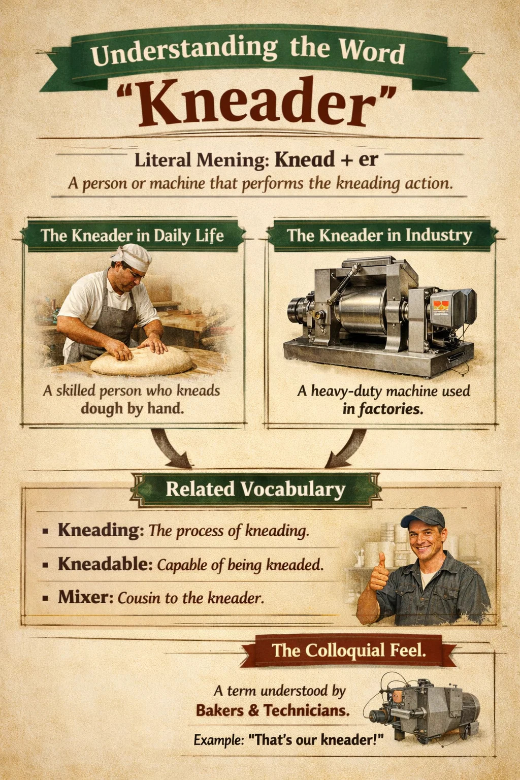 Toto slovo se skládá ze slovesa „hníst“ (hněte těsto) a přípony „-er“ (přípona označující osobu nebo věc).