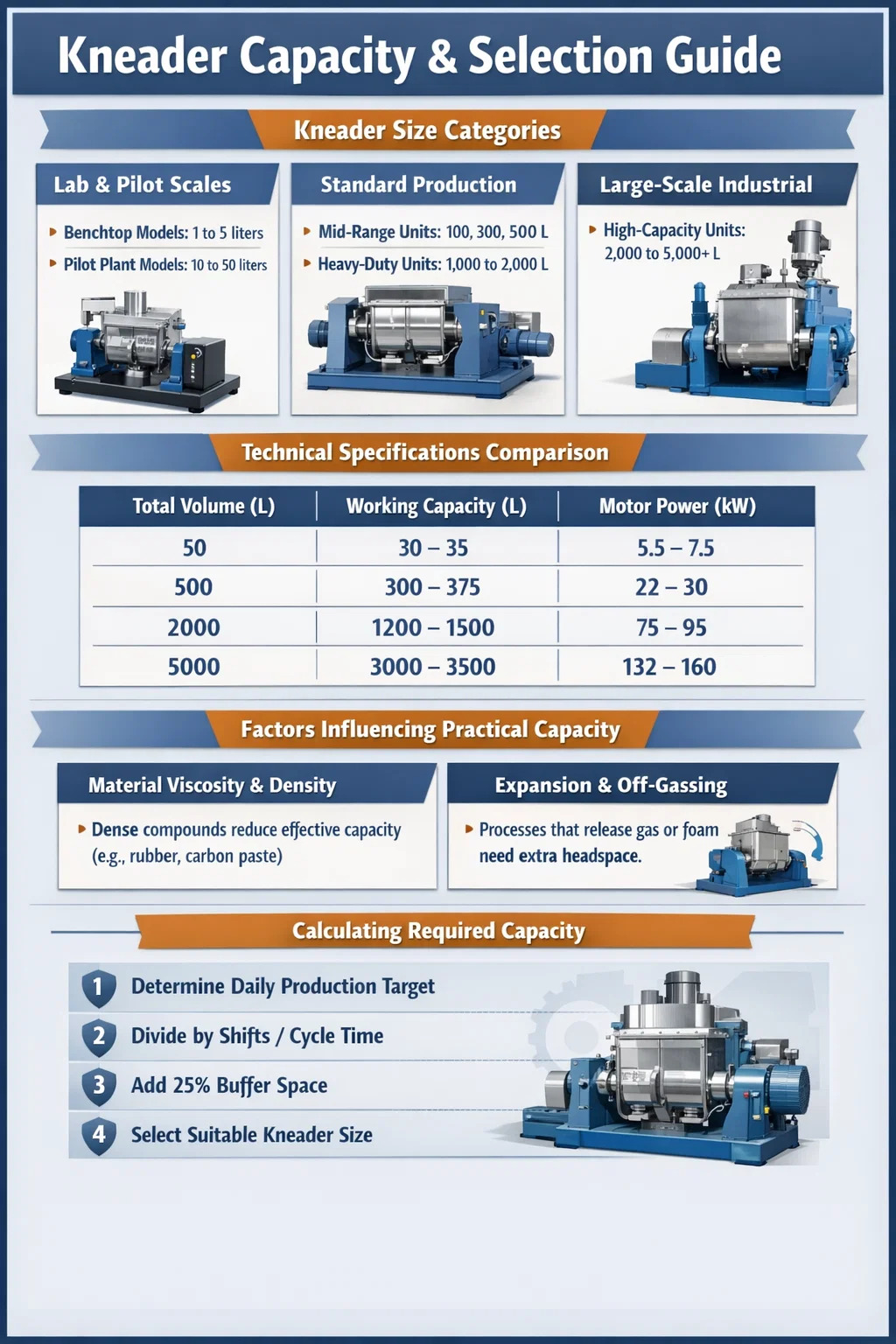 Efektivní kapacita a hnětač gumy nebo chemický mixér není jen otázkou velikosti nádrže. Několik fyzikálních faktorů určuje, kolik materiálu můžete skutečně zpracovat na dávku: